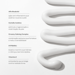 PTBR: Água, Decametilciclopentasiloxano, Olivato De Cetearila, Olivato De Sorbitano, Olivato De Etila, Pentilenoglicol, Coco-Caprilato/Caprato, Propanodiol, Caprilato De Glicerila, Copolímero De Acrilatos De Sódio, 4-T-Butilcicloexanol, Bisabolol, Acetato De Dextroalfatocoferol, Óleo Da Semente De Girassol, Extrato De Alga Marrom (Sargassum filipendula), Lecitina, Extrato De Alga Vermelha (Hypnea musciformis), Crospolímero De Dimeticona/Vinil Dimeticona, Extrato De Centelha-Asiática, Gluconato De Sódio, Triglicerídeo Caprílico/Cáprico, Undecilenato De Glicerila, Glicerol, Extrato Da Folha De Oliveira,Tocoferol , Hidroximetoxifenil Decanona, Benzoato de Sódio, Sorbato de Potássio.